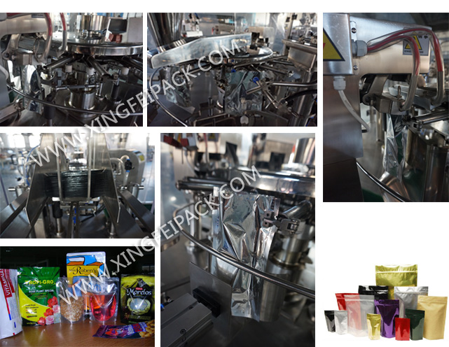 本機適用于平面袋,自立袋,拉鏈袋等各種形狀的熱封的復(fù)合袋, 與各種計量機配套,可進行顆粒,粉劑,液體等物料的包裝。