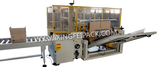 本機將疊成紙板的箱子自動打開,箱子底部按一定程序折合,并用膠帶密封,可單獨使用,也可與裝箱機連線使用。廣泛應用于食品,化工,日用品等行業(yè)。